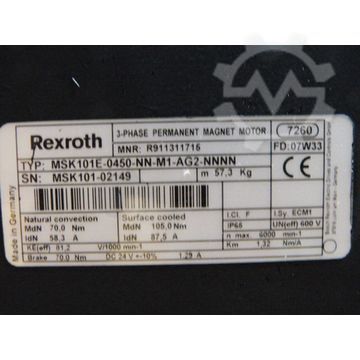 | Model | Rexroth MSK101E-0450-NN-M1-AG2-NNNN 3-Phase-Permanent-Magnet-Motor - ! - | ||||||||||||||