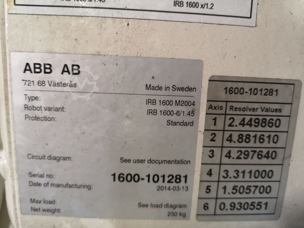 | Machine type | ABB ROBOT IRB 1600 | ||||||||||||||