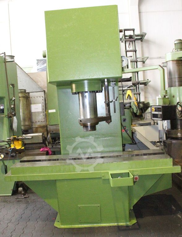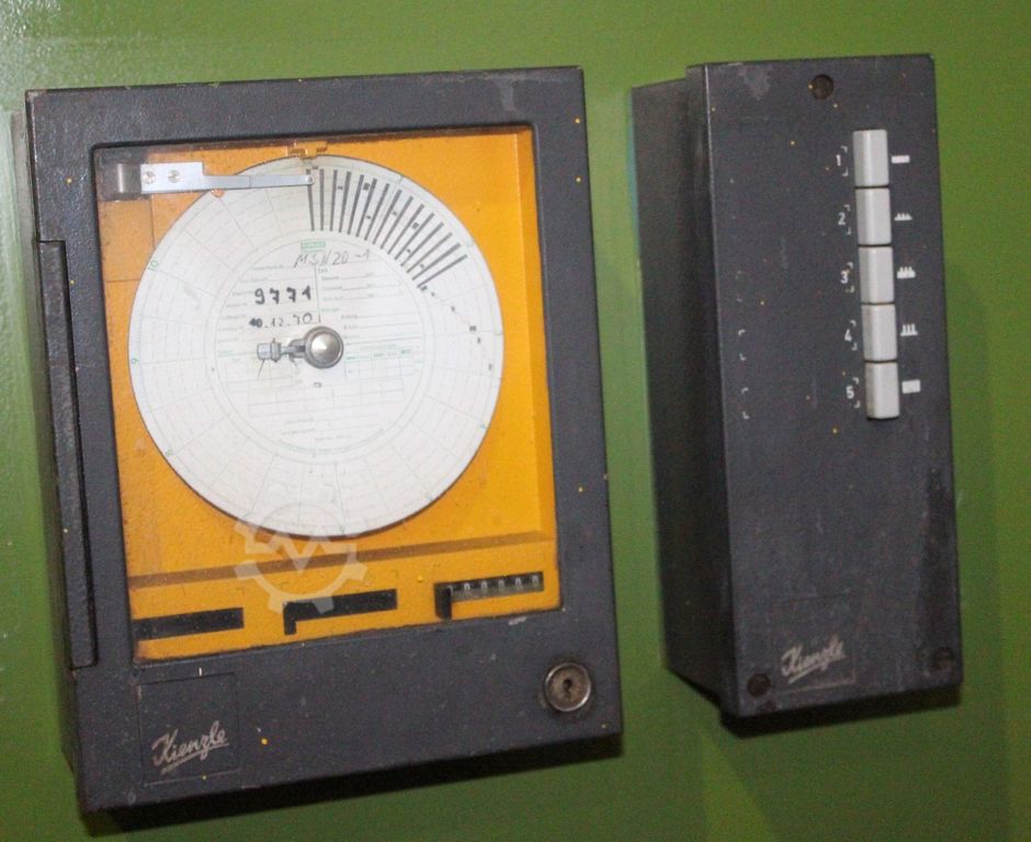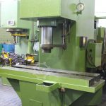 Make MAE type HY S 160 RHS built 1972 press print desc. 160 000 kg pressure ASC. 42400 kg piston stroke 350 mm throat depth / table depth 400 mm / 720 mm installation height 800 mm table width 2300 mm, height 800 mm total height / width / depth 300 mm / 2300 mm / 2100 mm plunger speed dev. ASC 16.7 sec. 4.55 seconds at 350 mm stroke plunger bore (H7) 80 x 130 mm 2.4 x 2 m