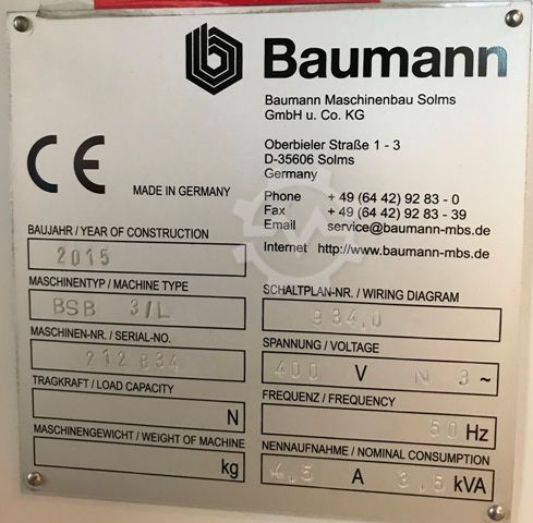 | Manufacturer | Baumann Maschinenbau Solms | ||||||||||||||